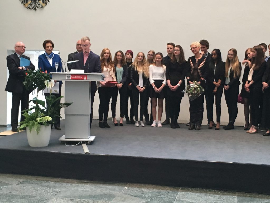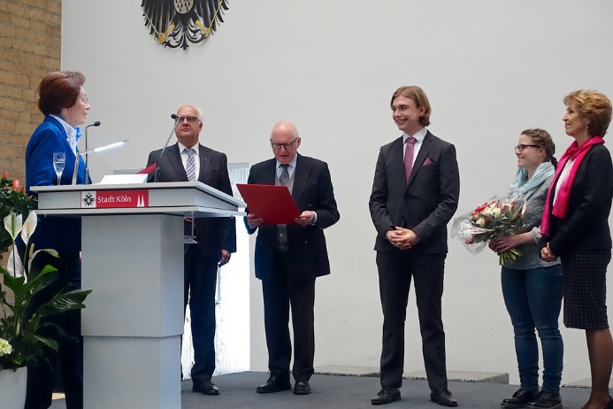 Im Beisein von Bürgermeister Hans-Werner Bartsch konnten die Vorsitzende des Förderkreises, Frau Dr. Marie-Luise Pichlmaier-Adenauer, und das Mitglied des Kuratoriums, Herr Prof. Dr. Armin Wildfeuer, die Preisträger im Rahmen eines Festaktes am 29. April 2016 im Rathaus der Stadt Köln auszeichnen.